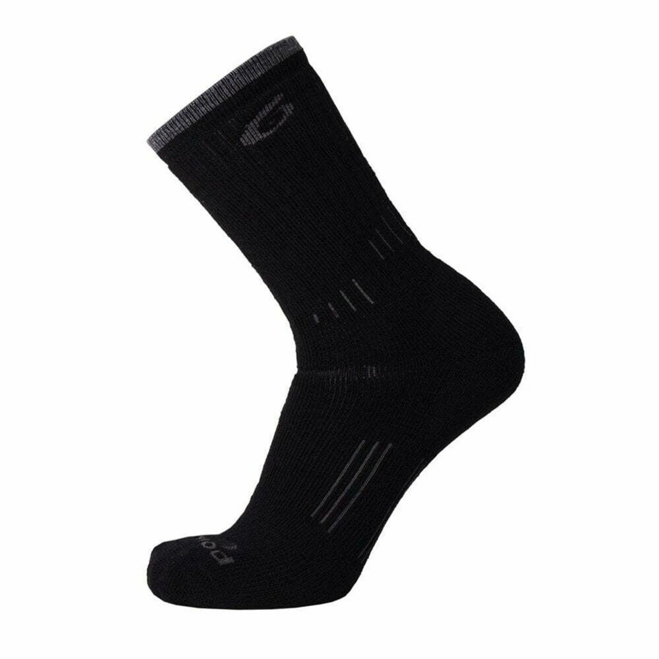 The Hiking Essential Medium crew sock offers extra cushioning on the instep and around the leg to protect against pressure points from heavier footwear. The cozy merino wool cushioning next to the skin insulates the foot from hot spots.