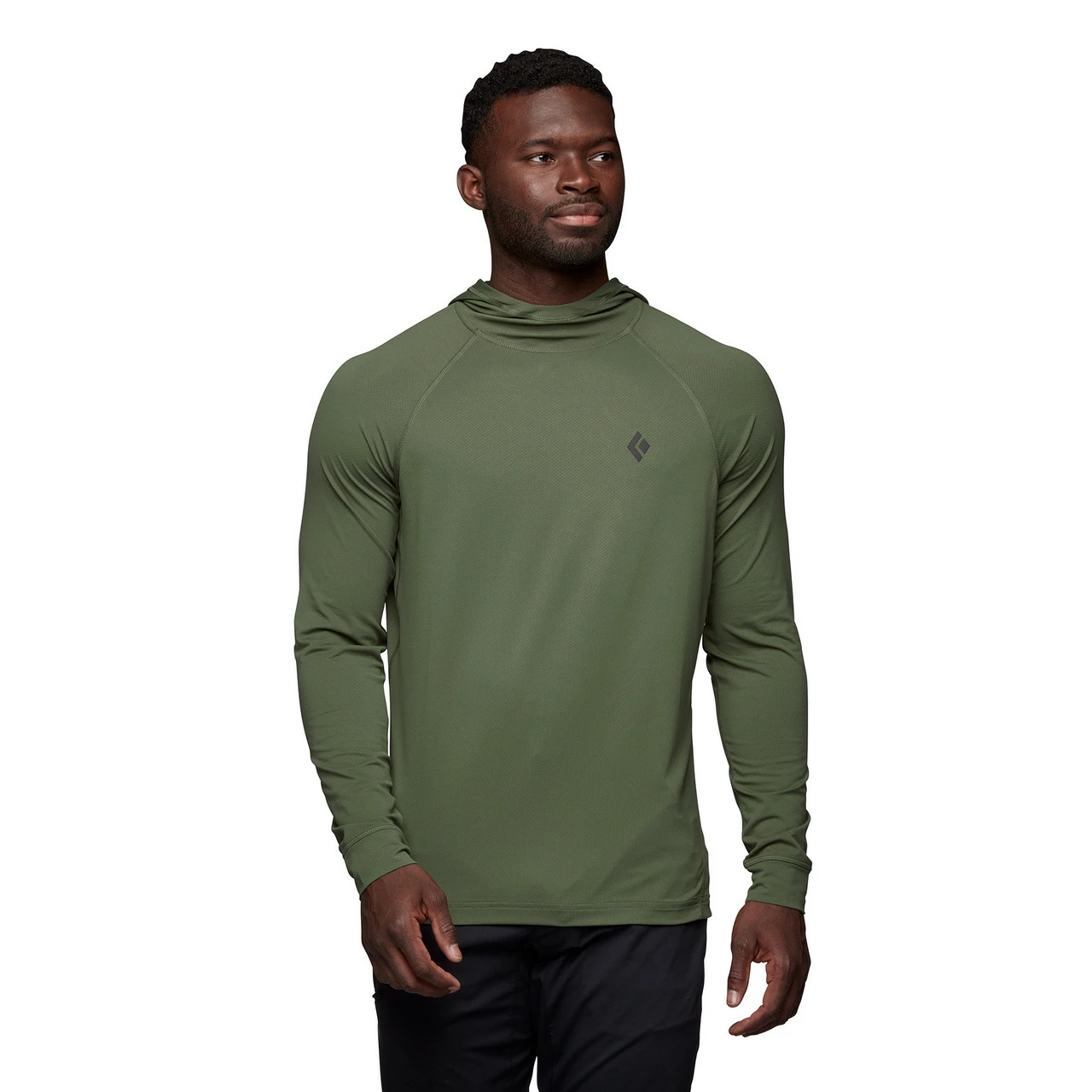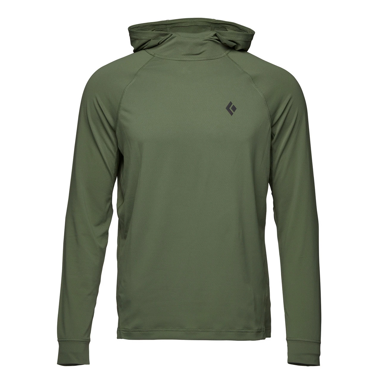 A technical fit paired with a highly protective fabric, the Black Diamond Alpenglow Hoody is a proven BD style which offers coverage on desert multi pitches, high-alpine approaches and hot crag sessions. With UPF 50+ and BD.cool mineral based in-fiber cooling technology, which reflects 71% of near-infrared rays and reduces wearer’s temperature. A layer of protection to your arsenal, with an under-the-helmet hood and pullover design, plus Polygiene odour control, the Alpenglow hoody offers the ultimate in performance and long-wearing comfort.