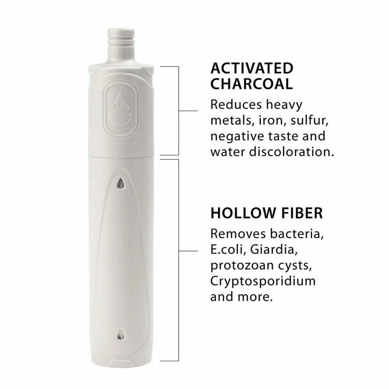 - Removes: Bacteria, Protozoa, E. Coli, Giardia, Vibrio cholerea, Salmonella Typhi, heavy metals, diesel fuel, bad taste