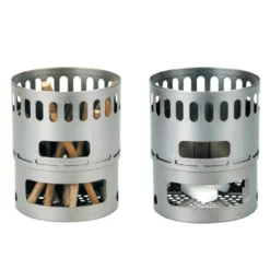 Evernew says: Pot stand and stove for wood burning and Esbit fuel tablets. Â