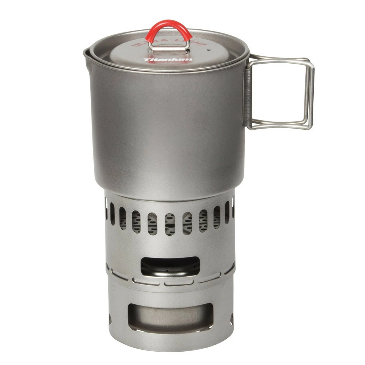 If you want the flexibility of cooking with twigs or Meths then this Evernew set is about the lightest option available weighing 3oz in total its an amazingly light and compact system. The burner itself is very high quality with fuel capacity graduations to make it easy to fill to the correct level.