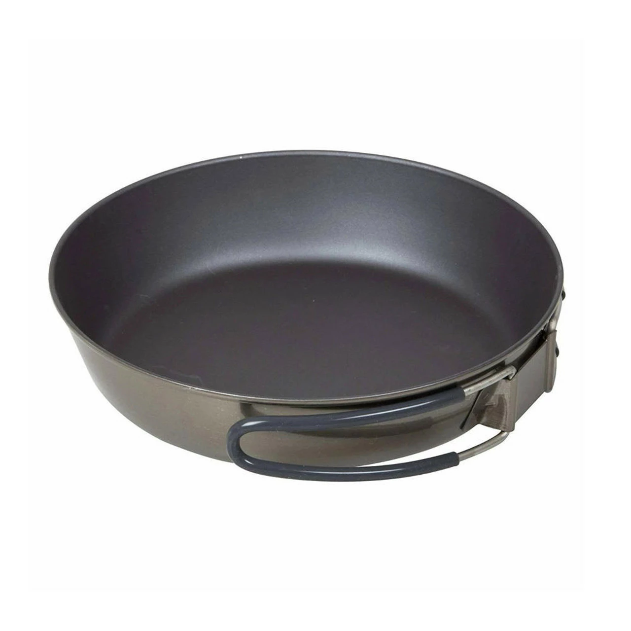 Evernew’s ECA-442 Titanium Non Stick Frypan with Handle (18) is one of the lightest frying pans we could find. In the outdoors a non-stick surface is even more important than at home because you may not have hot water for washing up – having said that titanium non-stick surfaces have their limitations and need looking after.
