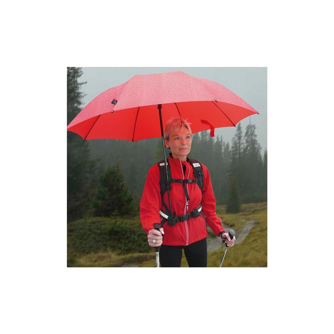 I’m a recent convert to hiking with an umbrella, and this is a brilliant solution to hands-free hiking. The big drawback is that you can’t use a rucksack with it, so it is not suited to me, but as EuroSchirm say, it’s great for mothers with prams and nature photographers. I like how adjustable the harness is; you can tailor the fit to suit the individual.