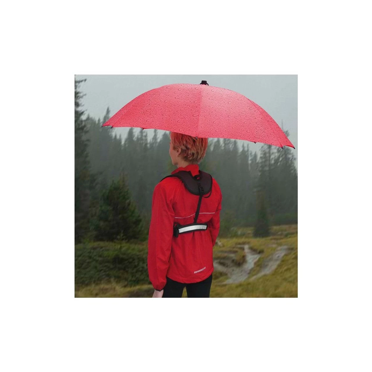 A comfortable and supportive harness for those who like to hike hands-free with an umbrella.