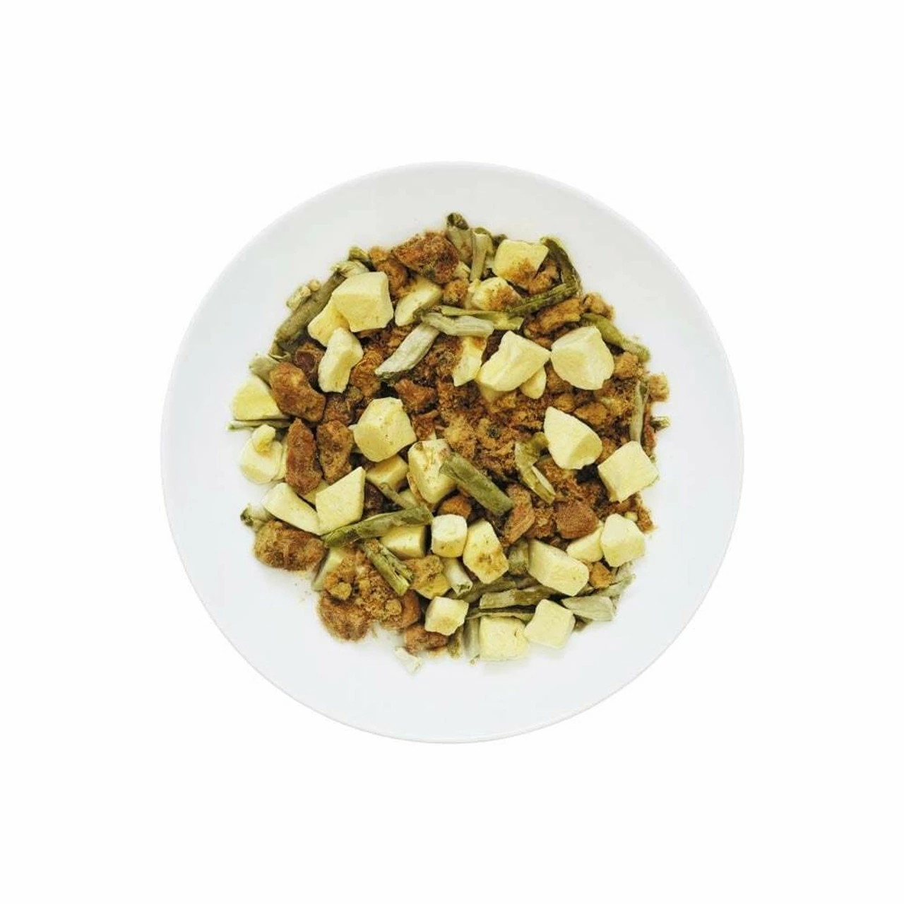 - pork loin 38% (cubes), potatoes 28%, green beans, onion, leek, wheat* flour, canola oil, salt, green peppercorn 1%. *allergen