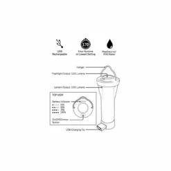 - USB – The Lighthouse Micro Flash Lantern can also be charged by being plugged into a USB power source.
