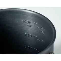 GSI Outdoor’s Halulite Boiler is a generous size for one and could be used for two persons for freeze dried meals or very simple cooking. Clear graduations, a fold away handle and a diameter sized to take a gas cartridge make it a very practical option.