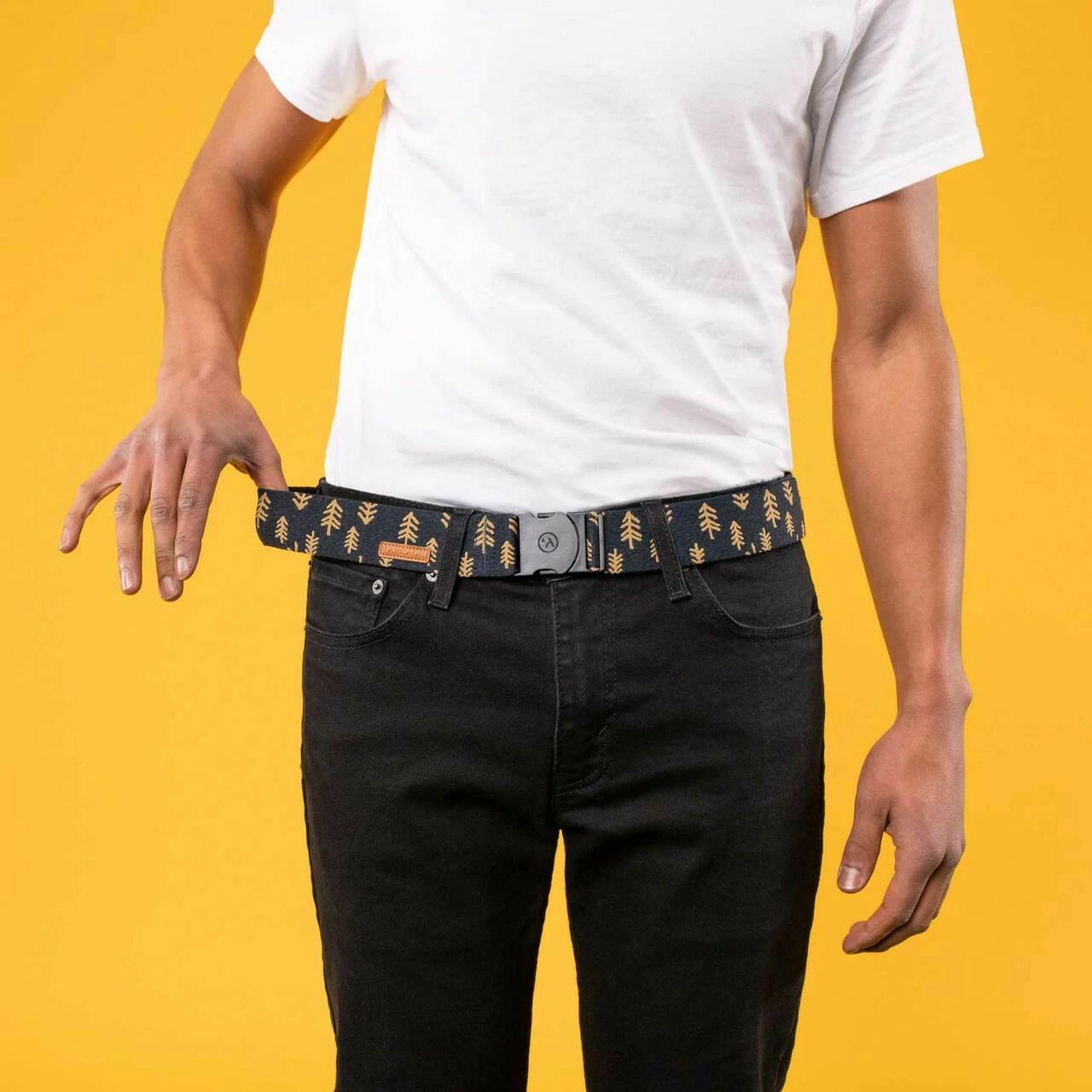 Lightweight, low-profile and stretchy make this the perfect belt for all your adventures. A superior fit and ultimate comfort come from an elastic stretch webbing that is durable and strong. This adventure belt has one size fits all sizing thanks to a micro-adjust belt buckle. No metal, no worries, this belt makes airport security a breeze. Built from machine-washable materials means you can leave the belt in your pants on laundry day.