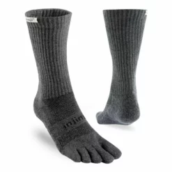This is the sock for long runs and aggressive hikes on rugged terrain. Our toesock design minimizes friction between the toes to help eliminate blisters, frees them to splay naturally, and lets you utilize your whole foot on narrow, uneven trails. The crew length rides high to seal out debris, and a band under the arch adds support. COOLMAX® fibers and a mesh top keep feet dry and cool, nylon fibers add durability, and midweight cushioning protects your feet.