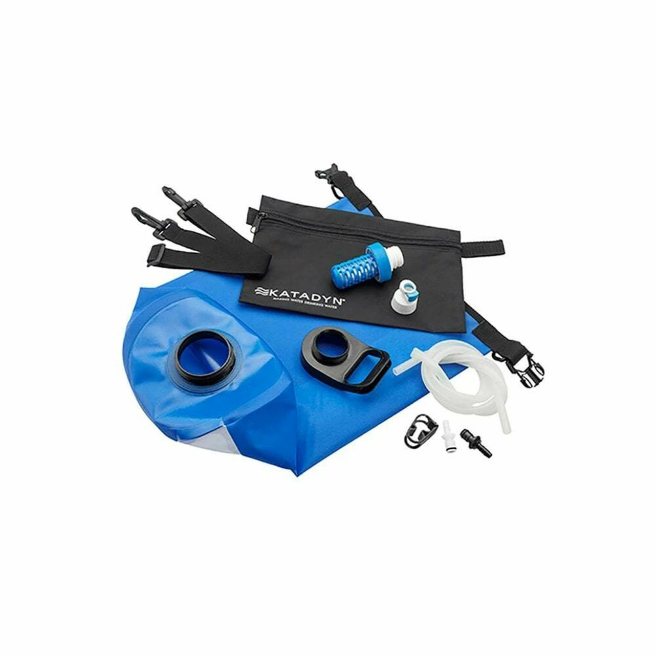 The sleek, foldable Katadyn BeFree Gravity 6L filter system uses gravity to get the freshest, cleanest water you can trust. The heart of the BeFree Gravity 6L is the EZ-Clean Membrane offering a fast flow rate of up to 2 liters per minute. The water passes through a hollow filter which safely removes bacteria, cysts and sediment with its pore size of .01 micron (0.0001 mm). Thanks to the water level indicator window, it is clearly visible when refilling is necessary. The practical carrying strap allows you to haul a full filter back to camp effortlessly, where it can be hung in a nearby tree. The ouput hose can easily be removed using a quick-release valve with automatic flow-stop, to prevent contact with contaminated water when refilling.