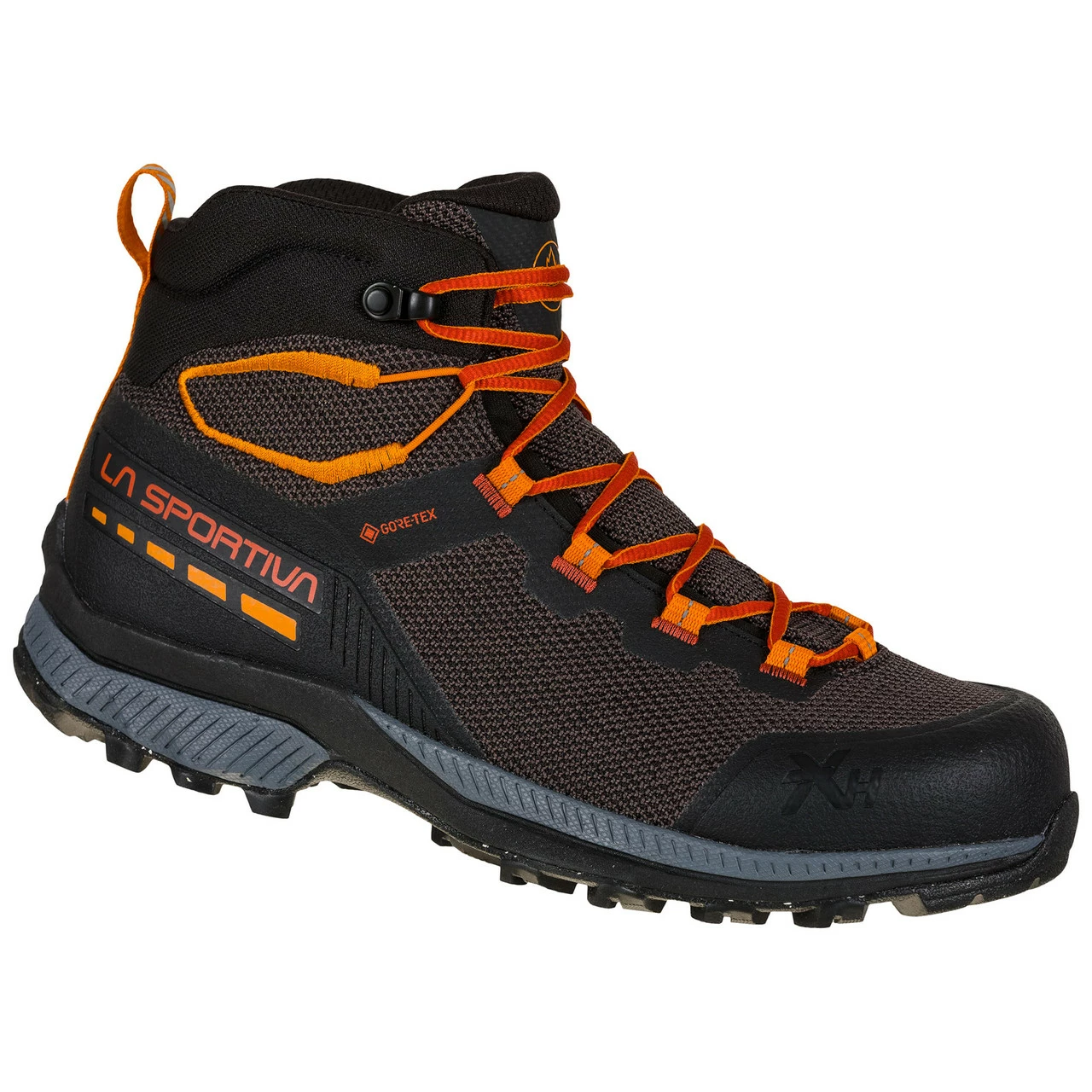 Fast hiking boot made with eco-compatible components such as: laces and straps in 100% recycled material, Ortholite® Hybrid insole, Vibram® Eco Step tread with components deriving from the processing cycle, upper in recycled fabric. It combines solutions of the La Sportiva Mountain DNA with technologies derived from Mountain Running® for a polyvalent and sustainable product. The very large volumes allow a very high wearing comfort. The new Gore-Tex® Extended Comfort membrane is also made with end-of-life plastic materials and is Bluesign® certified. The compression midsole in partially recycled EVA adds stability and cushioning for a reliable and comfortable product to wear even for a multi-day hiking. TX Hike: we think, you hike.