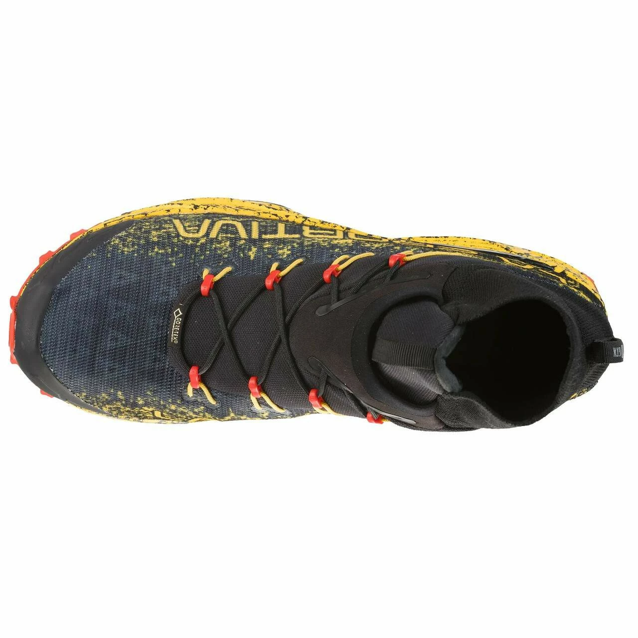 The sticky sole offers excellent grip on slippery surfaces and scree or ice thanks to the deep lugs and is compatible with AT-Grip Spikes. The Sock-Shield Gaiterâ„¢ protects against stones and mud and the Quick-Lace system with lace pockets makes lacing fast and easy. The lacing system is integrated with the uppers: this solution allows for the regulation of volumes and fit to provide more precise and stable support on traverse routes. The seamless construction and the super flex membrane in waterproof, breathable Gore Tex make Uragano the perfect winter running shoe for off road-runners who compete in winter trail competitions.