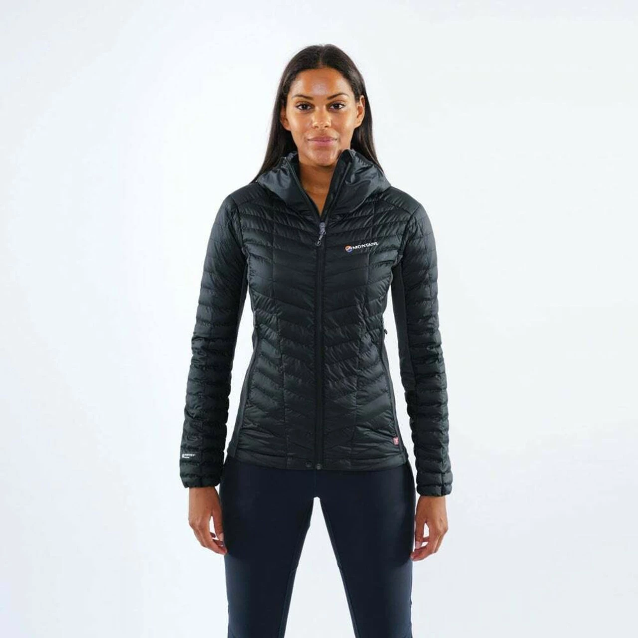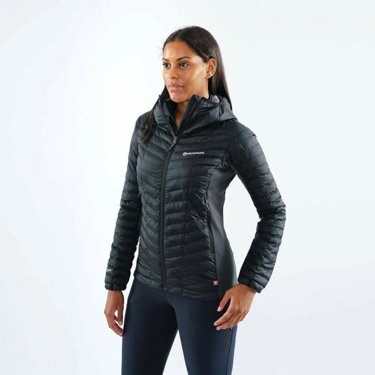 Montane’s Womens Phoenix Stretch Insulated Jacket uses a mix of PrimaLoft ThermoPlume Black and Silver to provide the warmth of down while its synthetic nature keeps you warm when wet unlike down. As the insulation is zoned it means that you benefit from warmth where its most needed while stretch fleece panels allow increased breathability and temperature regulation. The fit and design is all aimed at providing warmth for you when you are active so it is comfortable under a shell and works well when pulled out of your pack too.