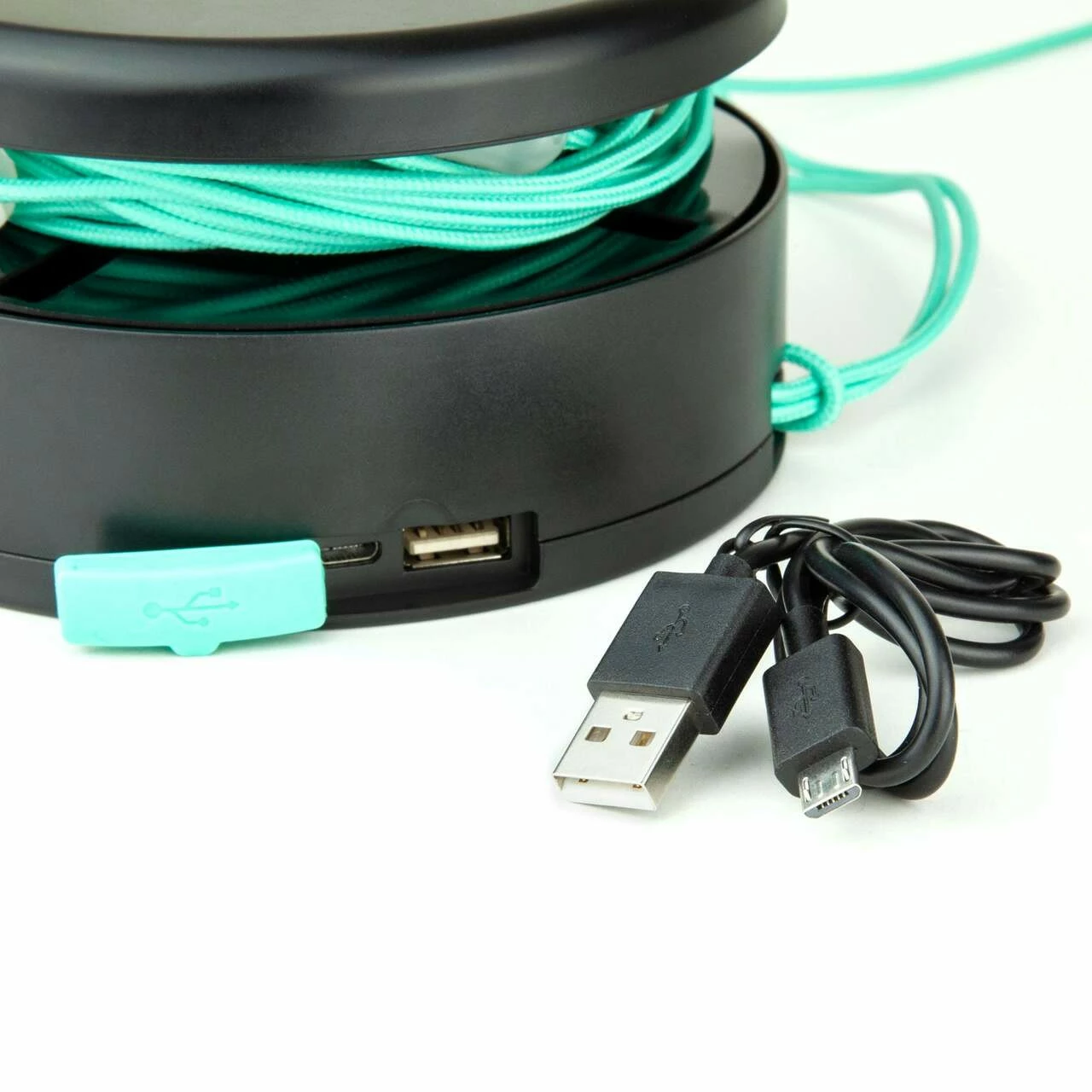 - USB plug at end of cord for charging light