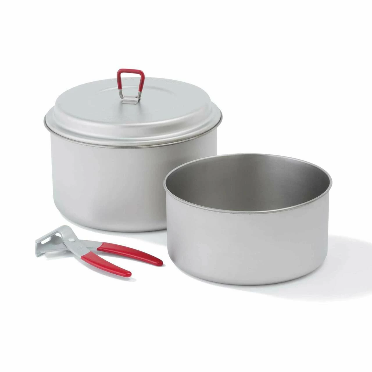 The MSR Titan is an ultralight, minimalist titanium pot set for two people. It’s efficient nesting design saves valuable pack room.