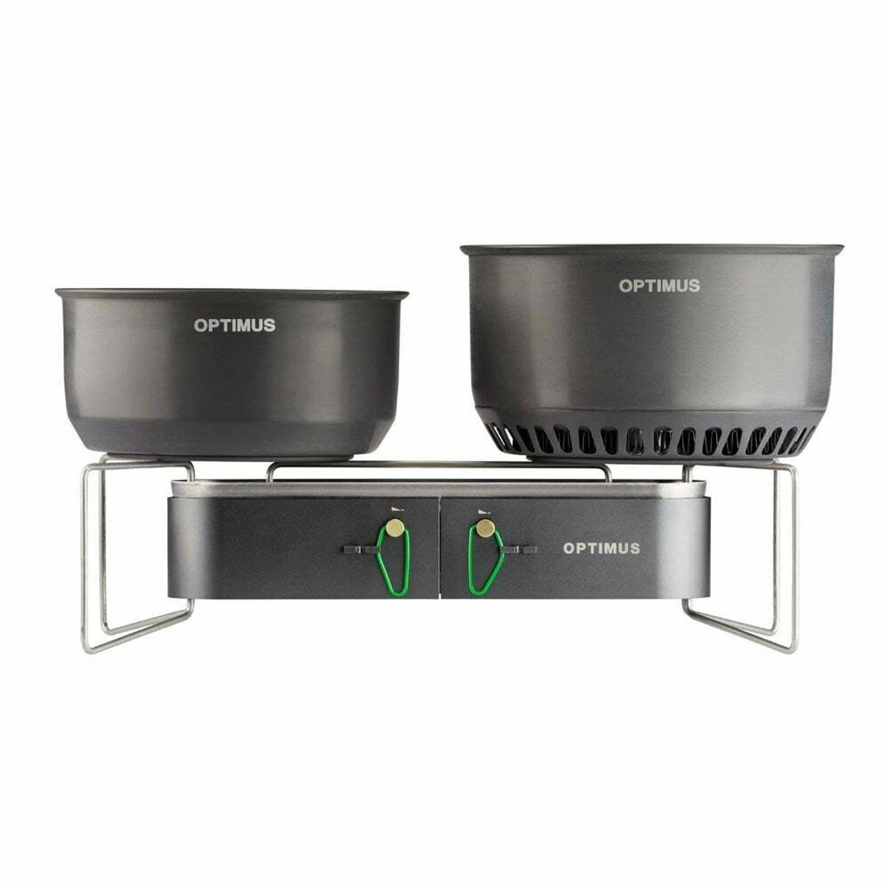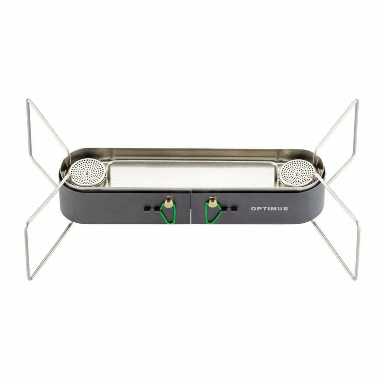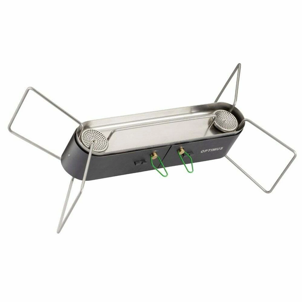 High performance, a trailblazing lightweight construction made of durable, high-quality materials and an innovative, patented compact design are the hallmarks of the OPTIMUS Gemini Double Burner. Ideal for preparing multiple dishes, rapidly boiling water or constant simmering for several hours, the Gemini brings new flexibility to outdoor cooking. Two separate hand controls allow the flame power to be varied independently for each burner head, while the integrated pressure control valve stabilizes the flame throughout the cooking process. This allows for precise cooking with efficient energy consumption. Raised edges protect the flames from wind and fold-out legs on both sides ensure optimum stability even when using large pots. Its small footprint and light weight make the OPTIMUS Gemini the ideal companion for any outdoor adventure where delicious food is a priority.