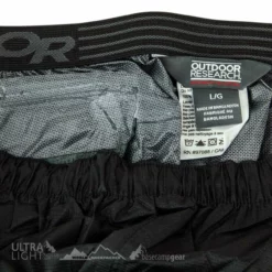 They’re made from Pertex Shield Diamond Fuse 2.5L that is waterproof, breathable and delivers high performance at a very low weight. Outdoor Research have used Diamond Fuse technology to improve durability and abrasion resistance with no increase in weight. Diamond shaped filaments in the yarn lock together to make a stronger fabric. Hydrostatic head has also increased compared to the version it replaces from 13,000mm to 20,000mm.