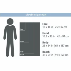 - Ultralight: Even in its largest size, the UltraLite towel barely tips the scales at just 5.1 oz., one third less than the closest competitor.