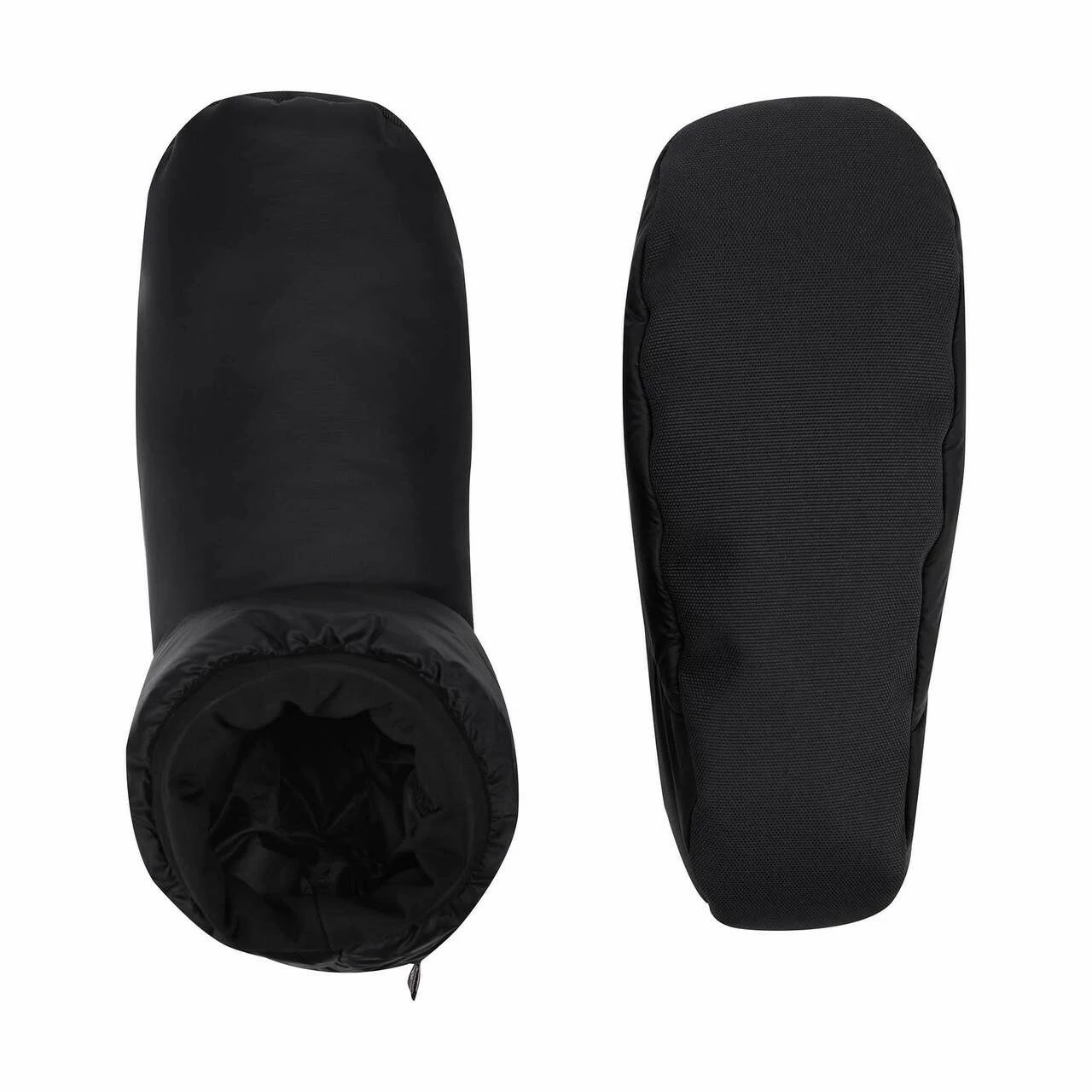 The Hot Socks are wrapped snugly in a lightweight 20D recycled fabric with minimal seams to reduce heat loss, and have a sturdy 900D nylon sole which further insulates your feet from the ground. They reach just above the ankle with a comfortable stretch cuff and pack down easily into their stuff sack for storage in your pack.