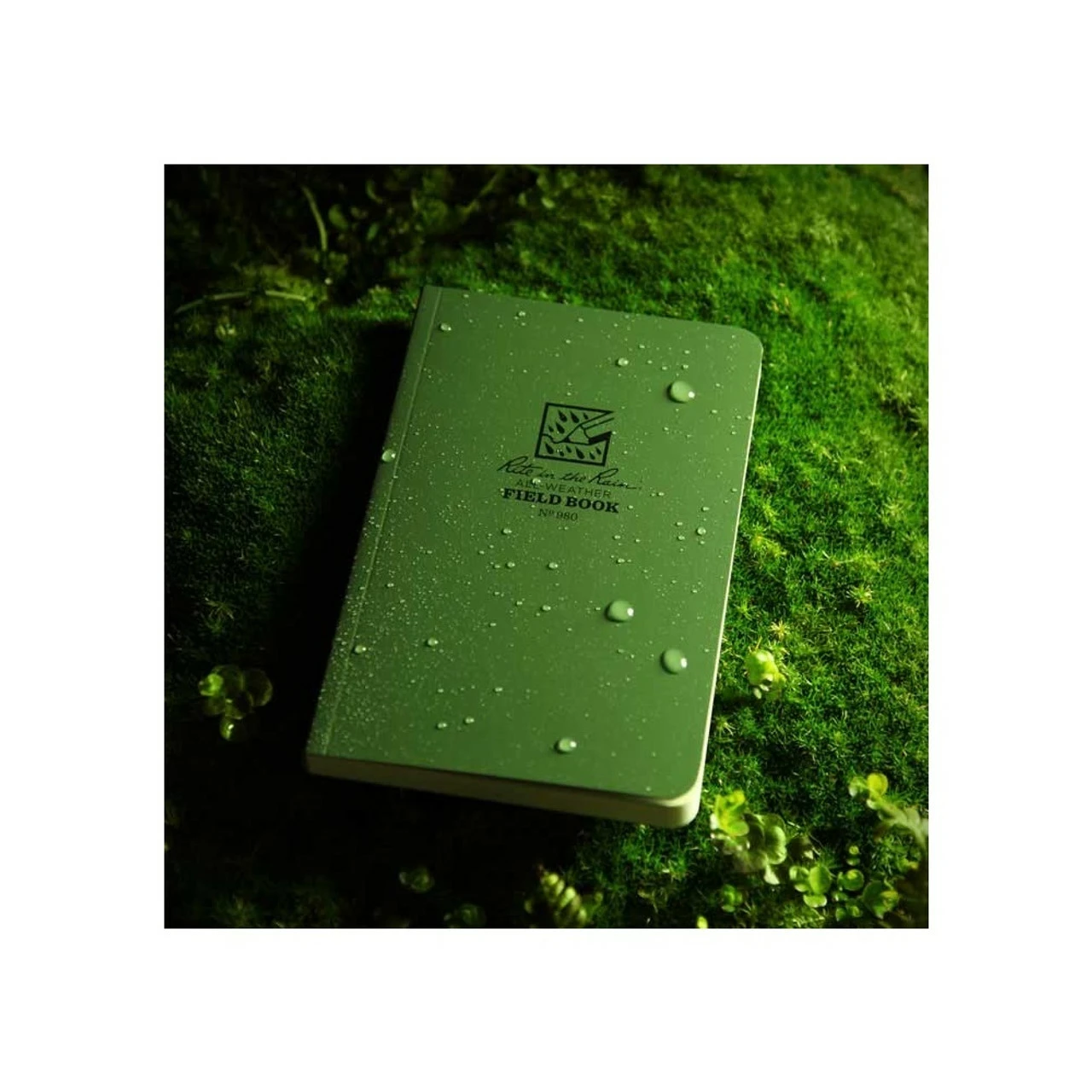 The tough Field-Flex cover will withstand the rigors of battle while fitting comfortably into your cargo pant pocket. Pages are printed on 4 5/8 in x 7 1/4 in non-glare 32# Green Rite in the Rain All-Weather Paper.