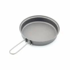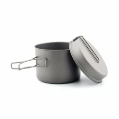 When ever ounce counts, pack titanium cookware! 1″ deep pan doubles as a lid or frying pan, and the deep pot boils enough water for dinner or a days worth of hydration. Heat-resistant handles fold away for compact storage.