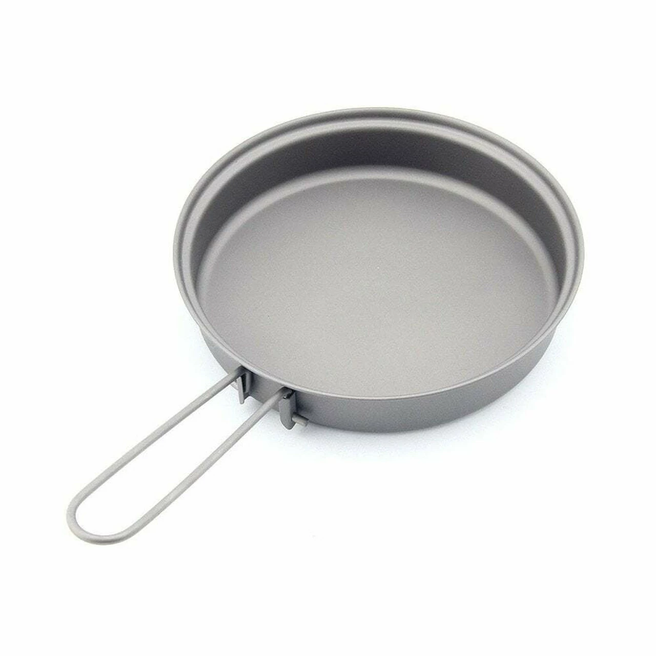 TOAKS Titanium Frying Pan can serve as frying pan or lid over the pot.